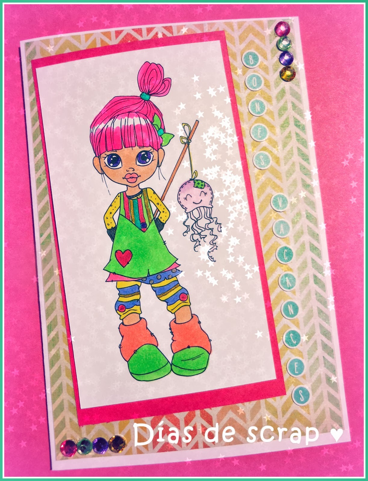 Yo hoy aún no he puesto un pie en la calle, quizás más tarde, pero ahora estoy aquí delante del ordenador pendiente de colgaros la nueva postal que he hecho para el reto de Saturated Canary. Esta semana pedían que hicieras una postal con glamour o con brillos. Yo he optado por esta última y le he puesto mucha brillo a la muñequita (aunque creo que en las fotos no se aprecia bien, es una lástima).
